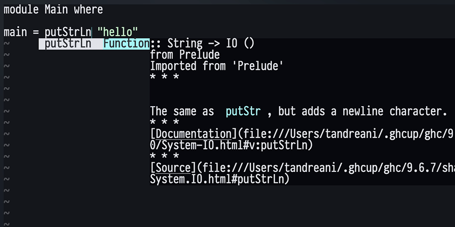 This was my attempt at learning Neovim by the way, but it had nothing to do with the HLS problem I stumbled upon. I tried to put a single file config together by copying and pasting whatever looked pain-free.