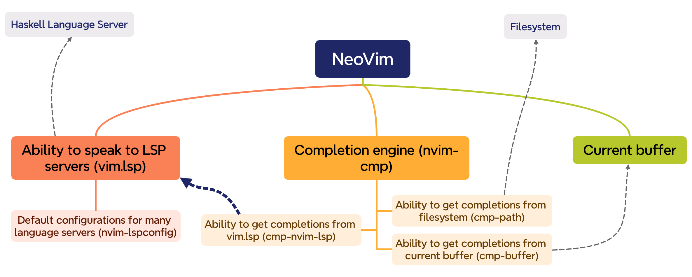 nvim-cmp is a completion engine for Neovim, you can do everything with it as long as source is provided, such as a filesystem for filename completion, or at least some kind of plugin that tells nvim-cmp how to use that source to provide autocompletion. It doesn’t speak to LSP servers, but it can speak to vim.lsp.